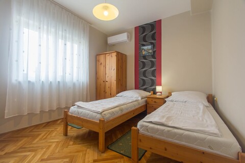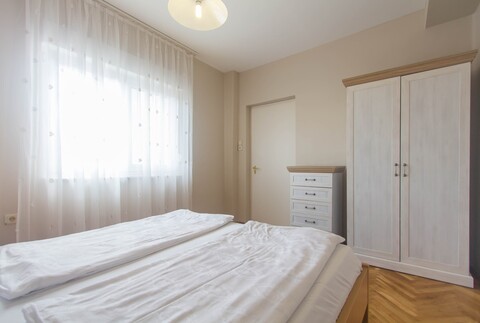 DG: 1 Schlafzimmer mit 1 Doppelbett, 1 mit 2 Einzelbetten, 1 Bad mit Dusche und WC,