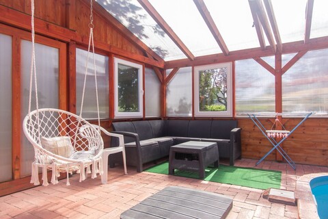 Der Hof, die Sauna und der Pool, können von den Gästen des Ferienhauses gemeinsam benutzt werden.